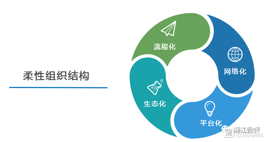 企业在数字化转型过程中应从组织结构设置、职能职责设置等方面,建立与数字化新型能力相匹配的职责和职权架构体系,建立流程化、网络化、平台化、生态化的柔性组织结构,并建立数据驱动的组织结构动态优化机制,提升组织结构与新型能力之间的适宜性和匹配度;建立覆盖全过程和全员的数据驱动型职能职责动态分工体系,以及相互之间的动态沟通协调机制,提升数字化能力建设活动的协调性和一致性。