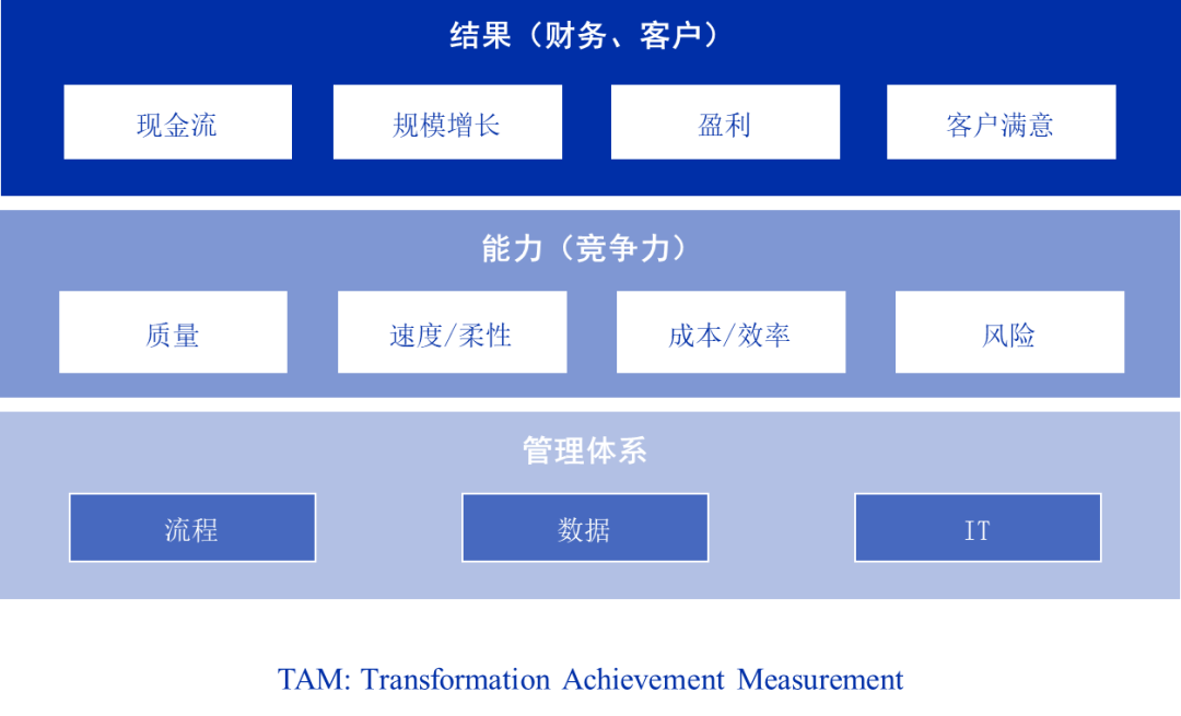 其中,价值是变革从此岸到彼岸的指南针;“TAM模型”(图4-11)从结果、能力、管理体系三个方面来指导项目进行价值管理;“船模型”(图4-2)则总结了如何用结构化的变革管理方法影响人心,提升变革支持度,实现“转人磨芯”。