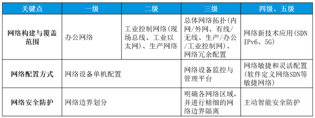 信息安全五级能力成熟度主要考察指标基本围绕管理机制、风险评估和技术措施这三个活动特征在描述和深化,可分为工业主机安全、网络边界安全、信息安全资源投入。