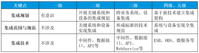 集成是智能制造能力成熟度评估体系中一个关键能力子域,主要考察企业集成规划、集成范围与规范和集成技术。